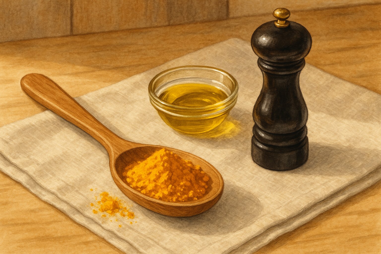 - 후추와 함께 복용 — 후추 속 피페린(piperine)은 커큐민의 흡수율을 최대 20배까지 증가시킵니다.