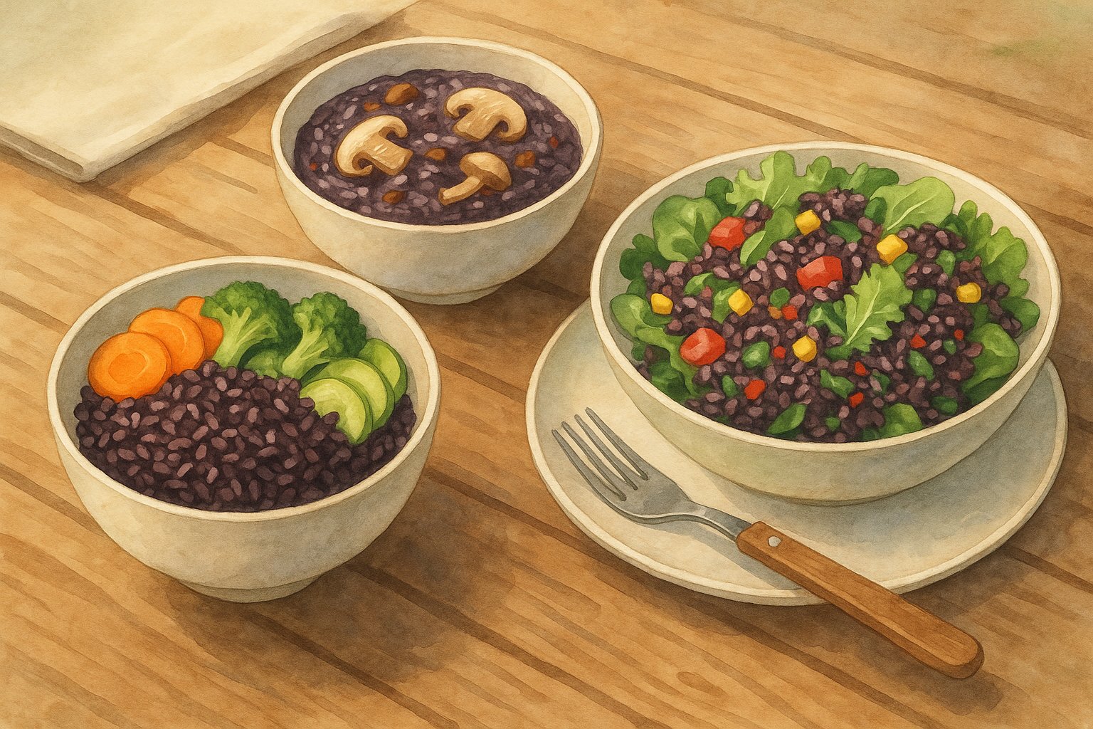 밥뿐만 아니라 검정쌀을 선식, 주먹밥, 오트밀처럼 응용하는 것도 좋은 방법입니다. 예를 들어, 아침엔 검정쌀을 갈아서 우유에 타 마시거나, 삶은 검정쌀을 샐러드에 뿌려 영양을 더할 수도 있죠.