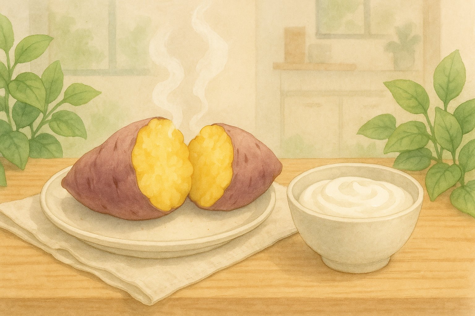 간식으로는 작게 썬 고구마를 찐 후, 무가당 플레인 요거트와 함께 드셔보세요. 고구마의 저항성 전분이 프로바이오틱스가 장에서 잘 살아남도록 도와줍니다. 가볍고 속이 편안한 간식으로 제격입니다.