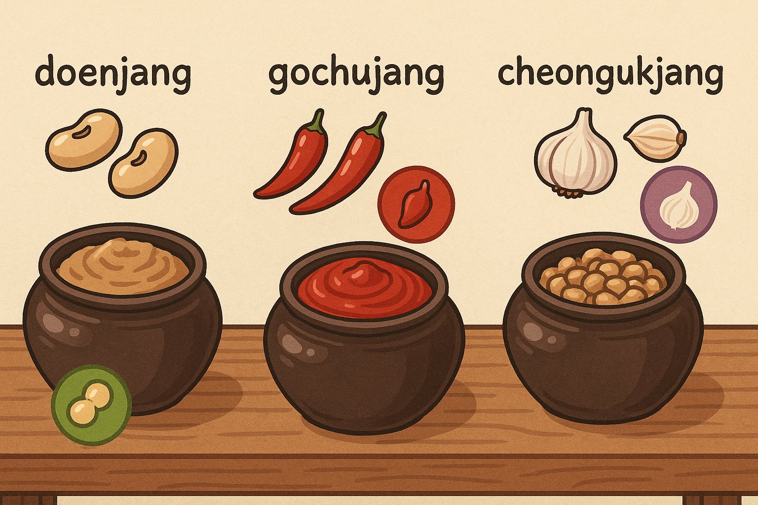 | 항목 | 된장 | 고추장 | 청국장 |