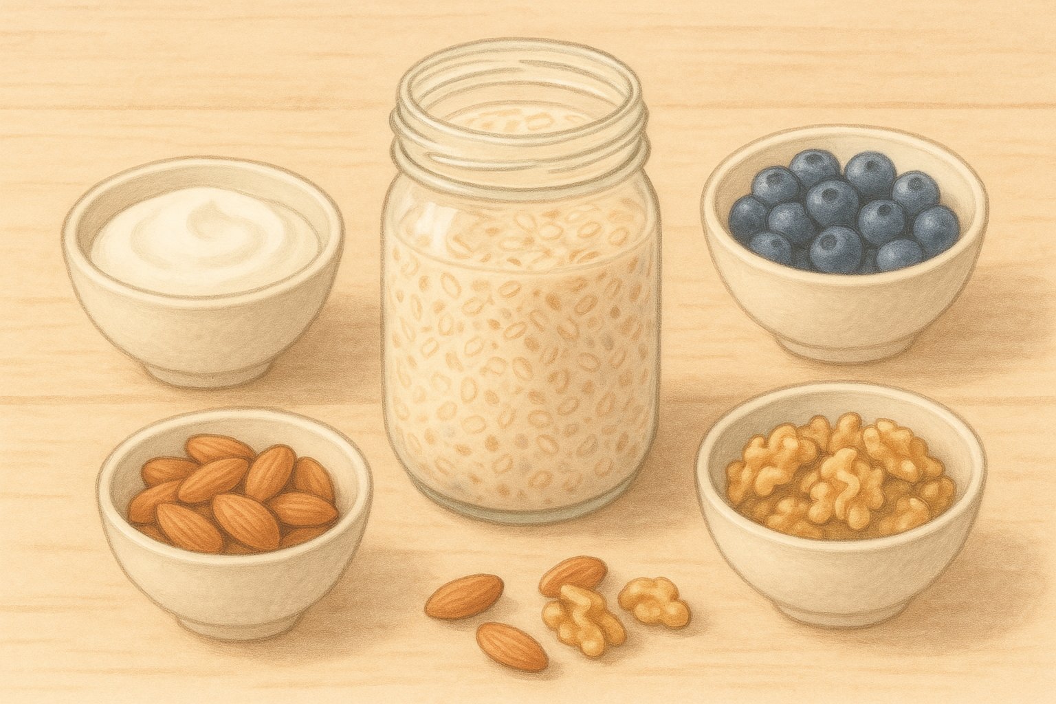 - 오버나이트 귀리 + 그릭요거트 + 견과류: 아침 식사로 이상적인 단백질 조합. 섬유질과 단백질을 동시에 섭취할 수 있어 포만감도 오래갑니다.