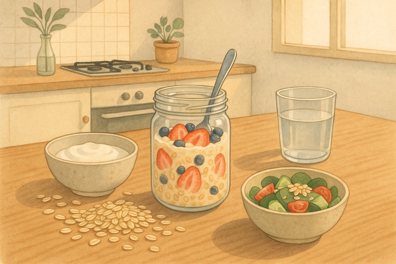 - 하루 한 끼는 귀리 기반으로 구성하기 (예: 귀리 + 닭가슴살 샐러드)