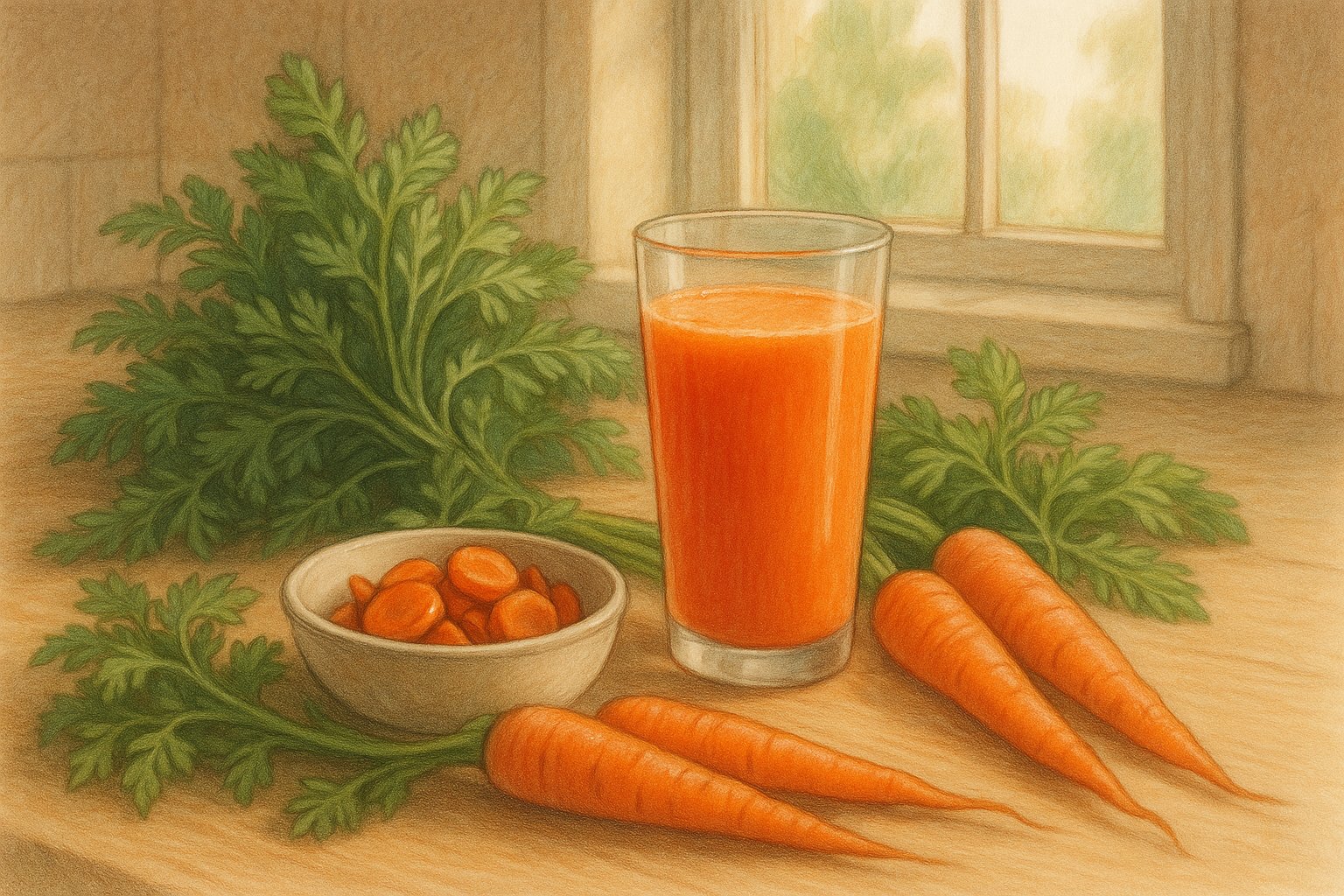- 아침 공복에 당근 주스 한 잔: 흡수율이 가장 좋은 시간대이며, 루틴 형성에 유리합니다.