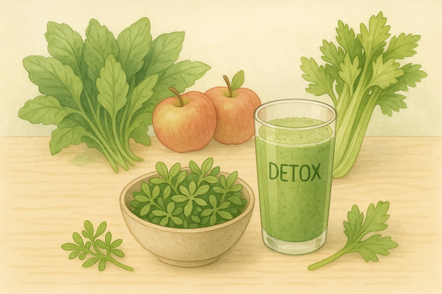 - 해독주스 – 사과, 셀러리, 돌나물을 함께 갈아 마시면 간 해독 효과 상승