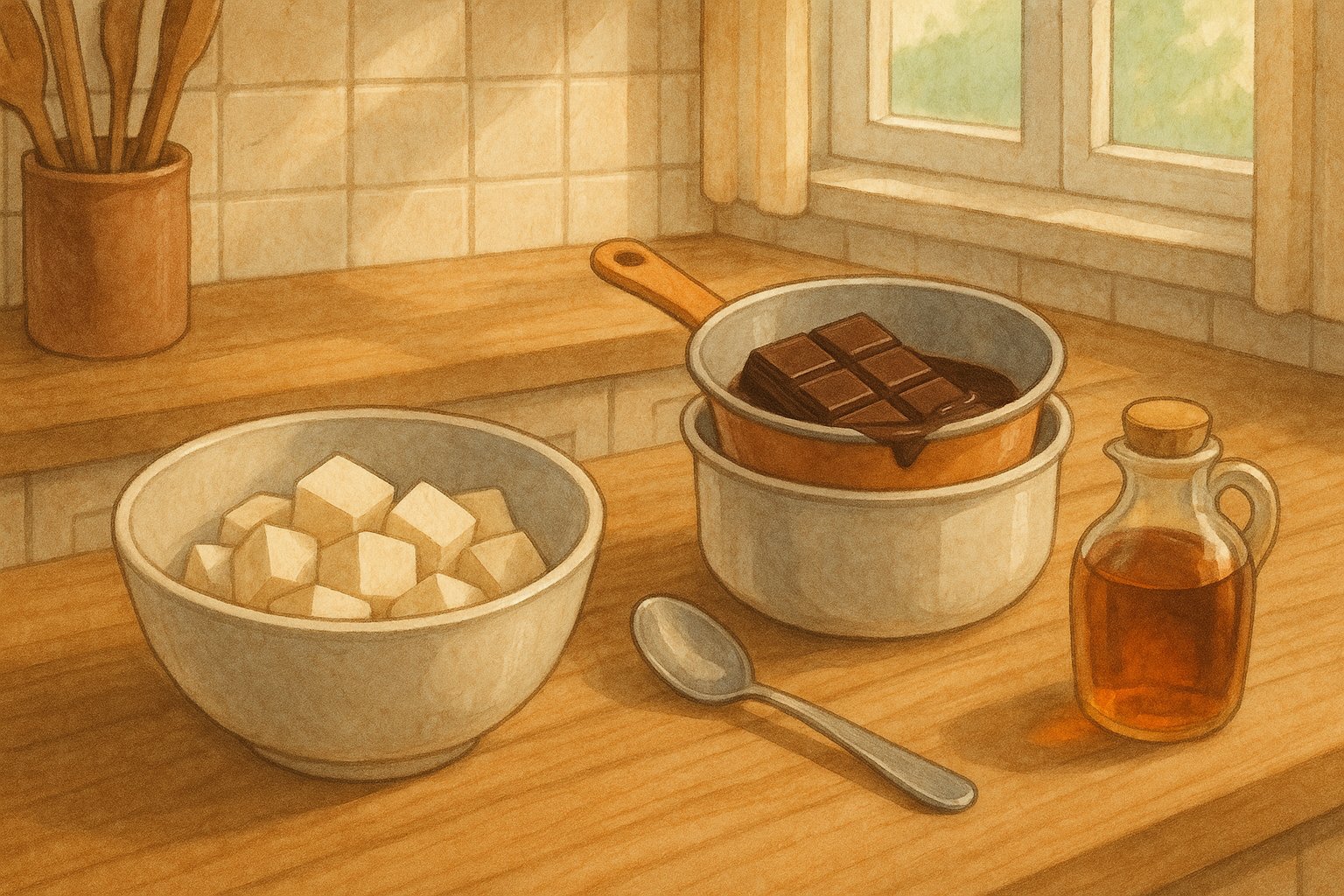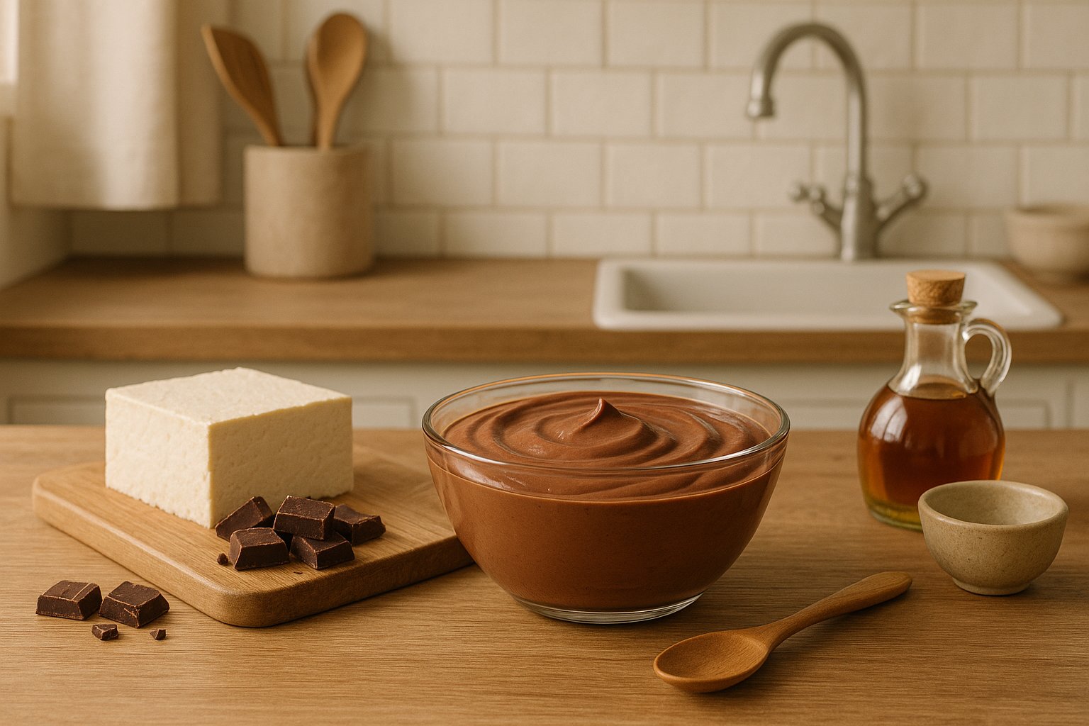 - 재료: 연두부 1팩, 다크 초콜릿 100g, 메이플 시럽 1큰술, 바닐라 추출물 약간