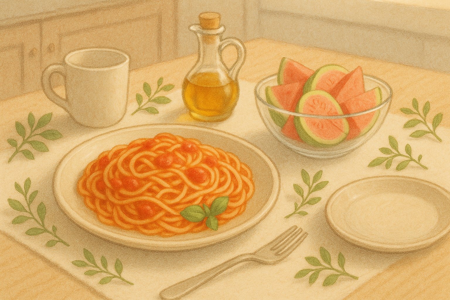- 저녁: 토마토 스튜 또는 토마토파스타 + 바질 토핑