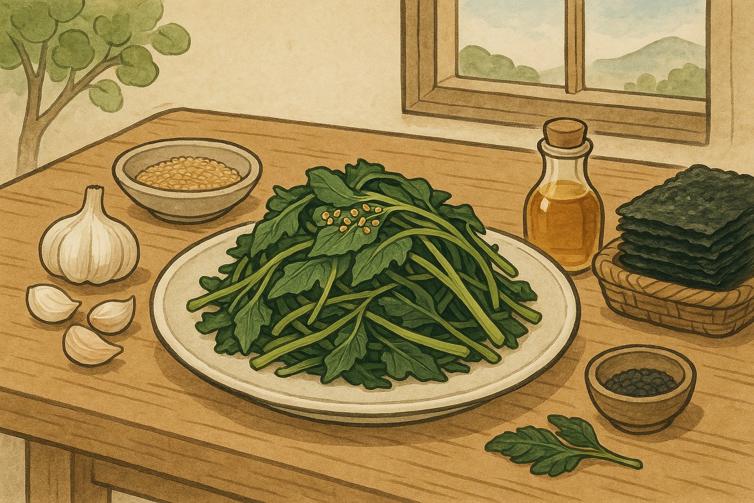 - 미역취 나물무침: 살짝 데친 뒤 간장, 참기름, 마늘로 무쳐 냉채처럼 활용