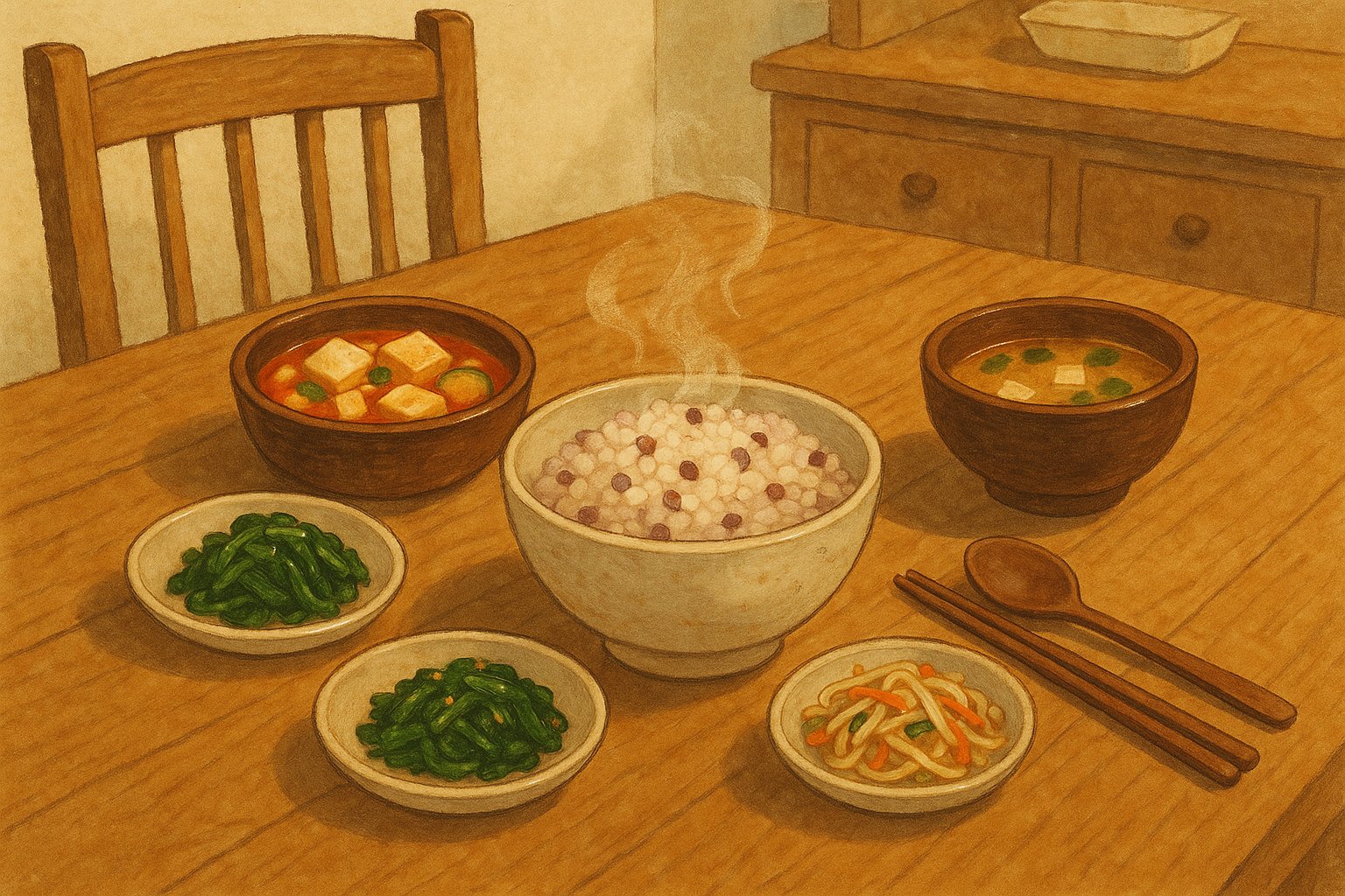 - 섬유질 강화: 나물 반찬(시래기, 도라지 등), 된장국