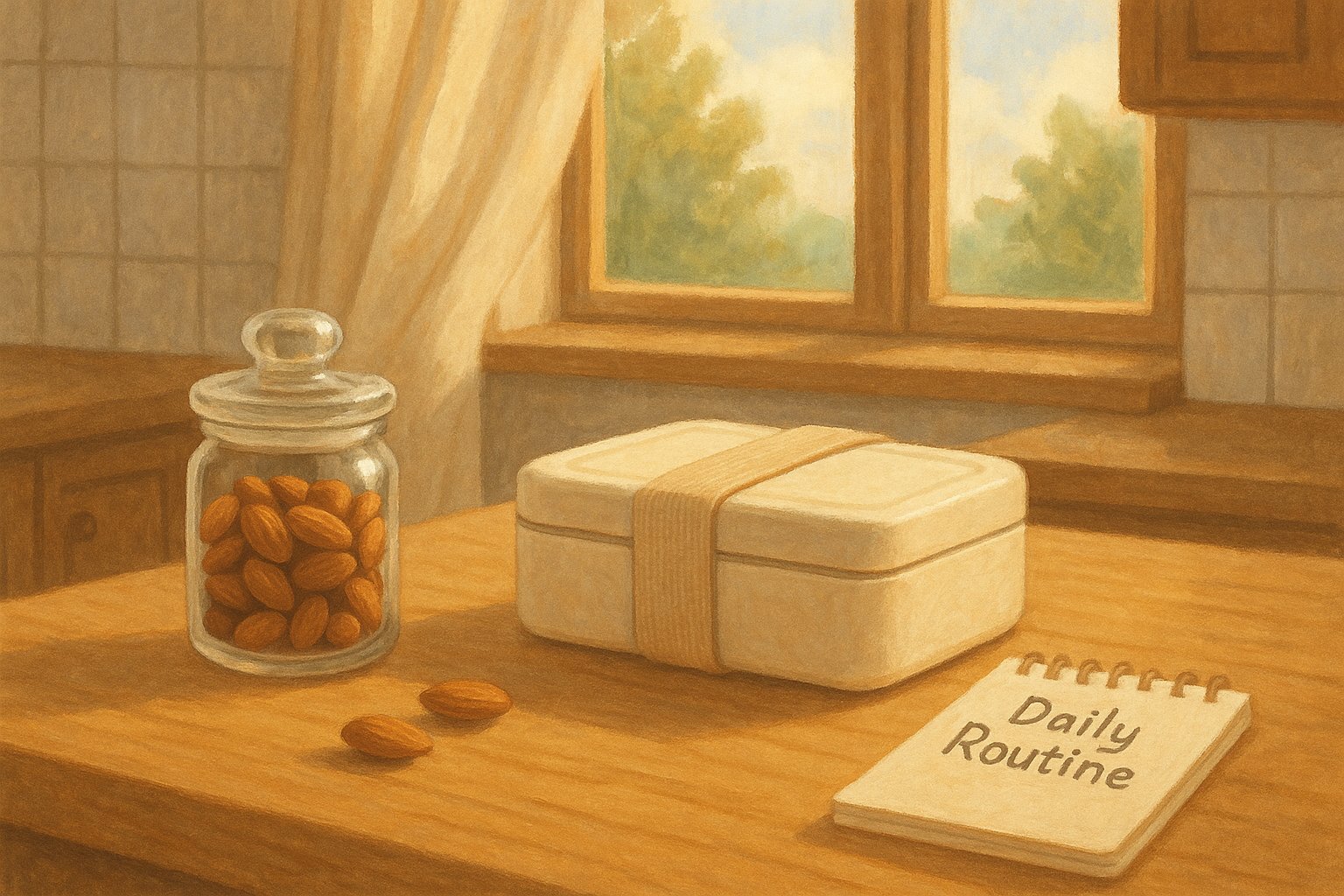 아몬드를 일상 속에 자연스럽게 녹여내기 위해선 루틴화가 필요합니다. 다음은 실천 가능한 간단한 방법입니다: