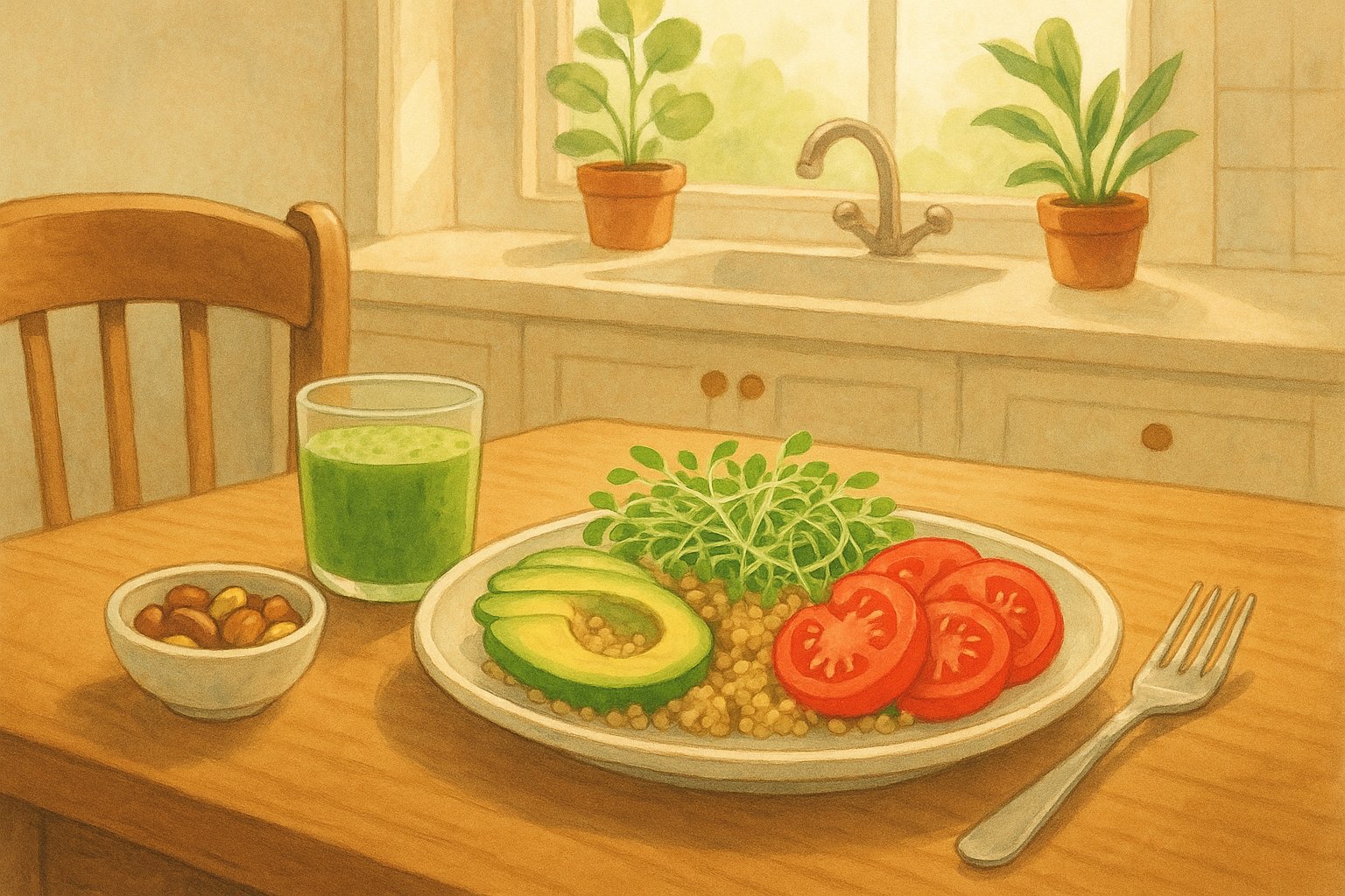 다음은 알팔파를 활용한 하루 식단 예시입니다. 콜레스테롤 저하와 식물 기반 건강식을 목표로 짜여졌으며, 누구나 부담 없이 실천할 수 있습니다.