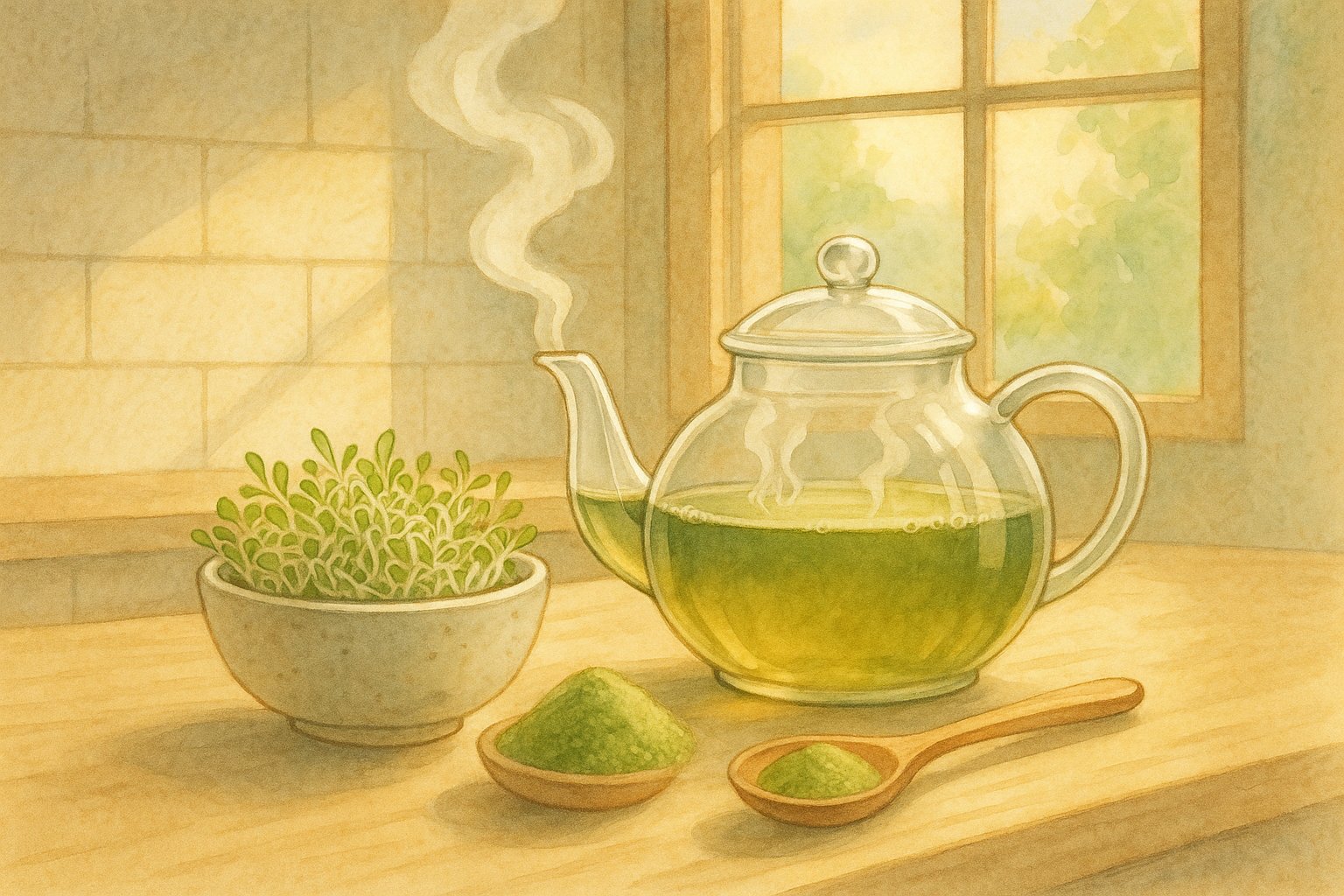 - 알팔파 티: 건조된 알팔파 잎을 우려내어 차로 마시면 가벼운 해독 효과와 함께 활력이 회복됩니다.
