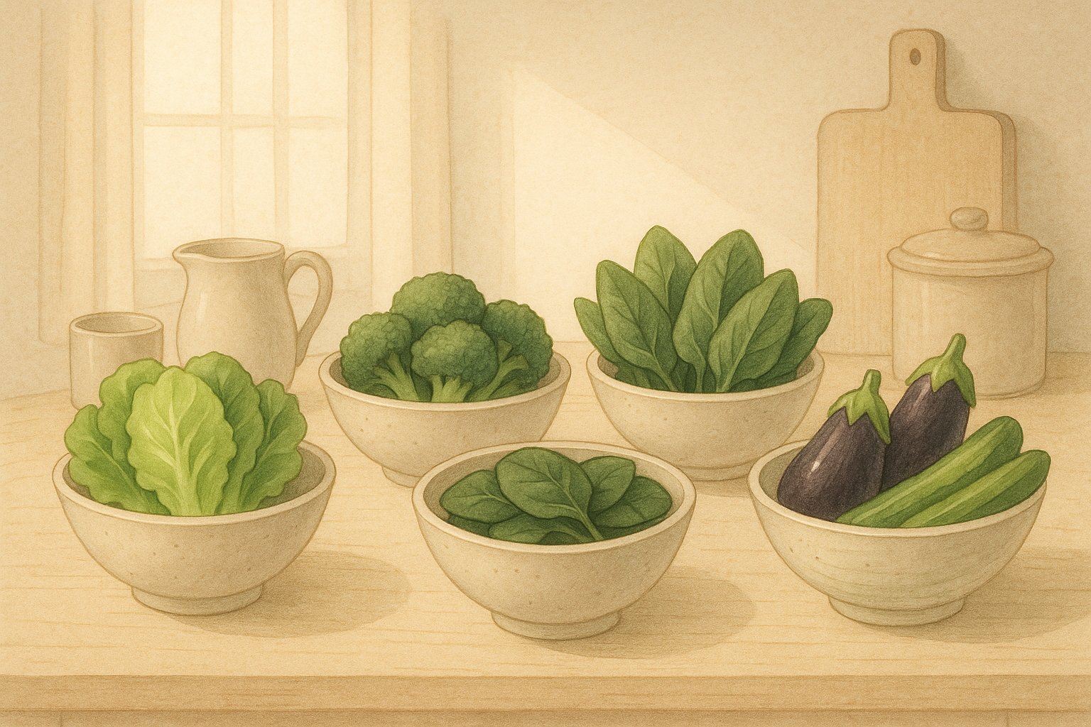 다음은 혈당 안정에 도움을 주는 대표적인 채소 다섯 가지입니다. 이 중에서도 양상추의 위치와 역할을 비교해 살펴보겠습니다.