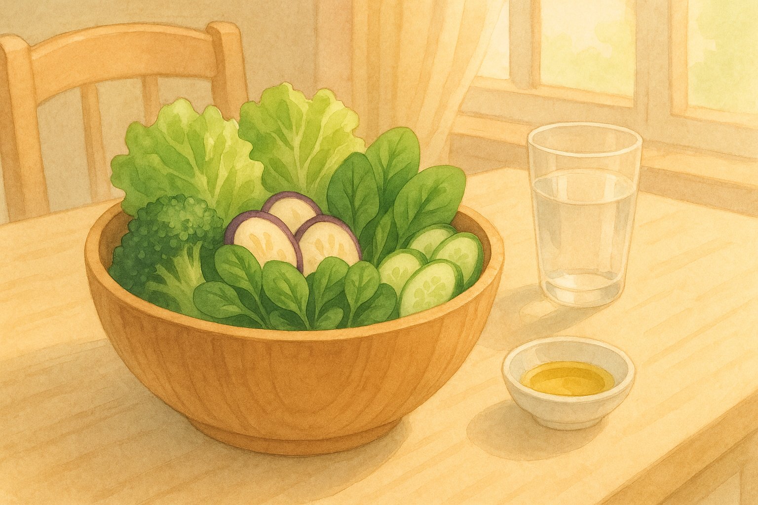 - 생채소와 익힌 채소의 균형: 양상추, 오이 등 생으로 먹을 수 있는 채소와 함께 브로콜리나 시금치는 데쳐서 활용하면 소화 부담이 적습니다.