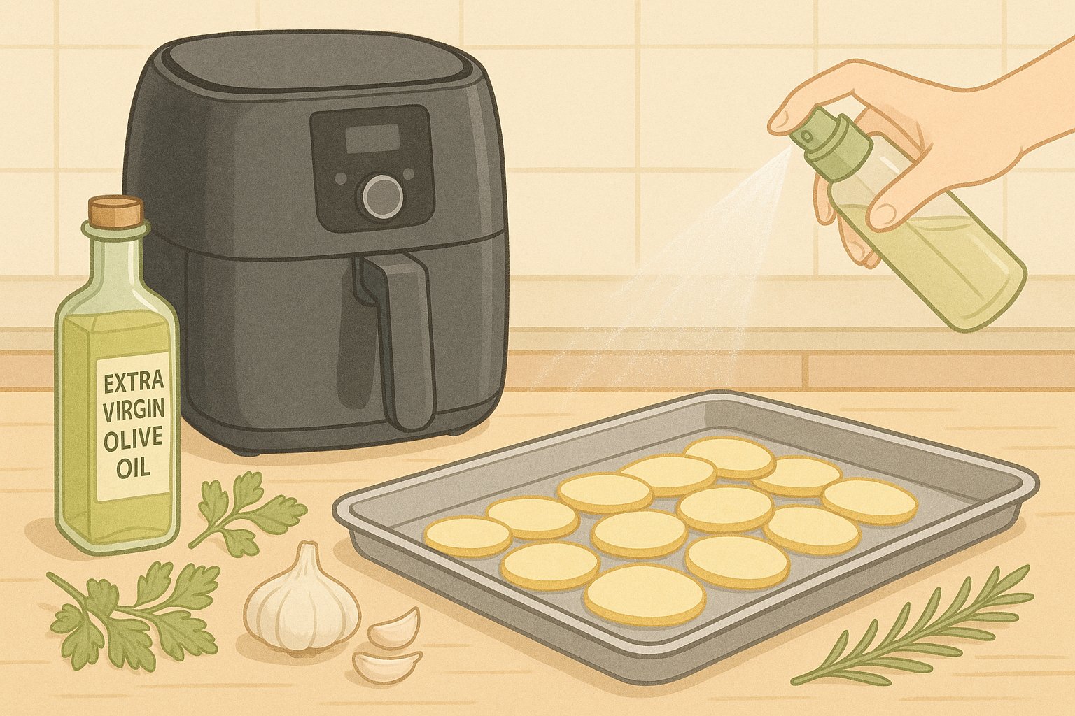 에어프라이어나 오븐을 사용할 때는 오일 분무기를 활용하면 훨씬 적은 양의 오일로 같은 효과를 낼 수 있습니다. 분무기 형태로 분산시켜 도포하면 1~2g으로도 겉면을 고르게 코팅할 수 있어 기름 사용량은 70% 이상 줄이고도 바삭함은 그대로입니다.