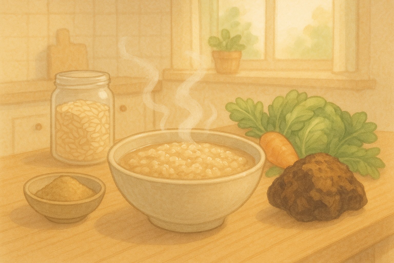 - 방법: 귀리를 차가버섯 물에 10분간 불린 뒤 약불에서 천천히 끓입니다. 마지막에 들깨가루를 넣어 고소함을 더하면 완성.