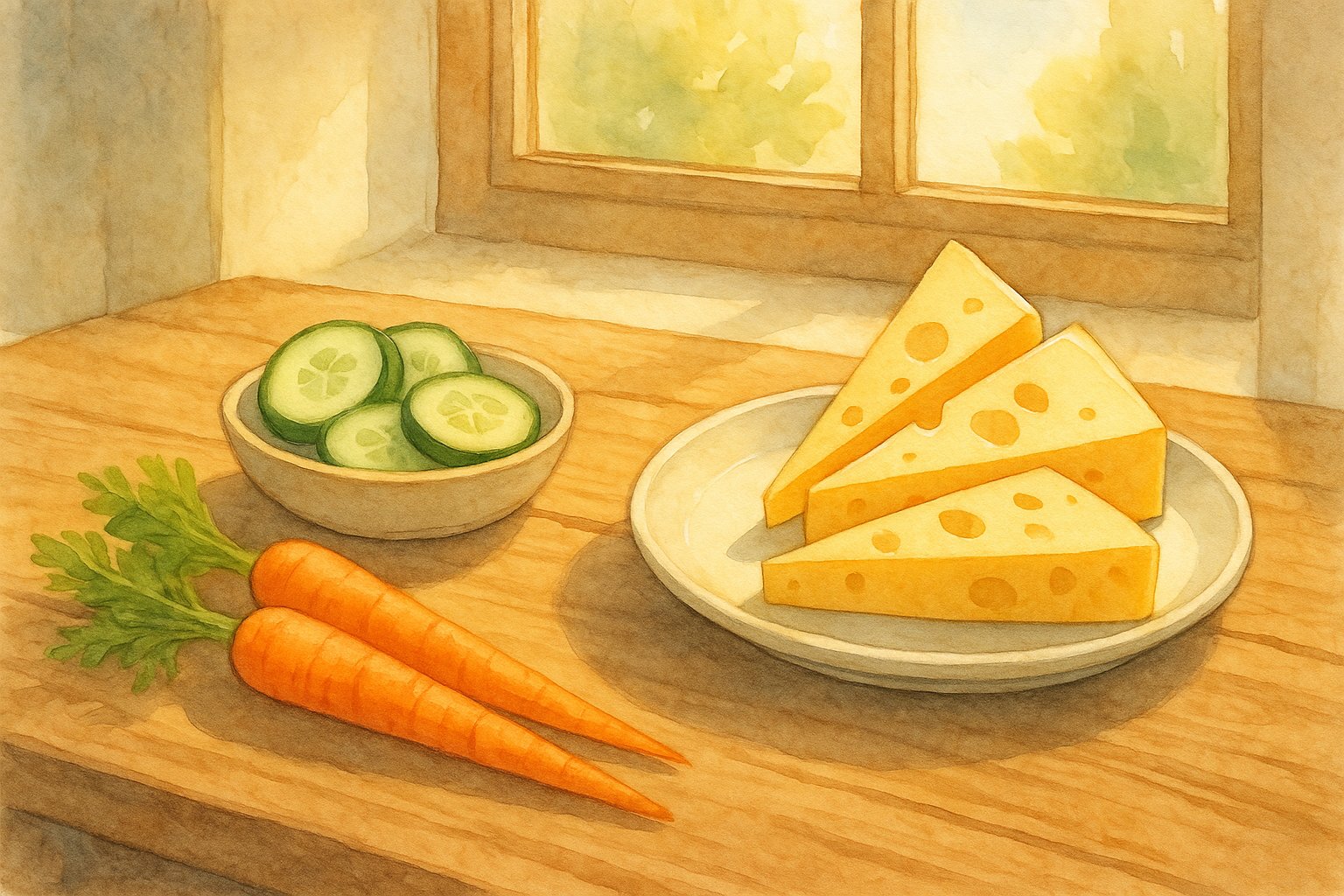 - 천연 치즈 우선 선택: 모짜렐라, 리코타, 까망베르처럼 비교적 저염이며 첨가물이 적은 종류가 이상적입니다.