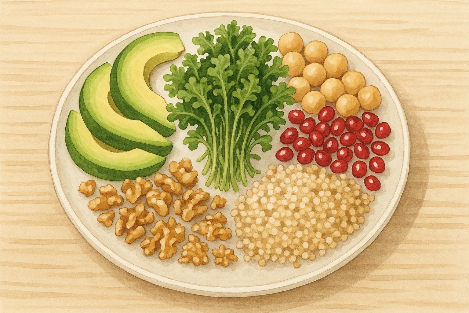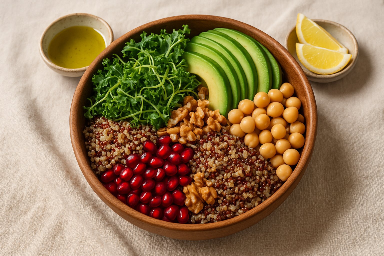 - 케일순 + 아보카도 + 석류 + 퀴노아 + 호두 → 완벽한 영양 밸런스