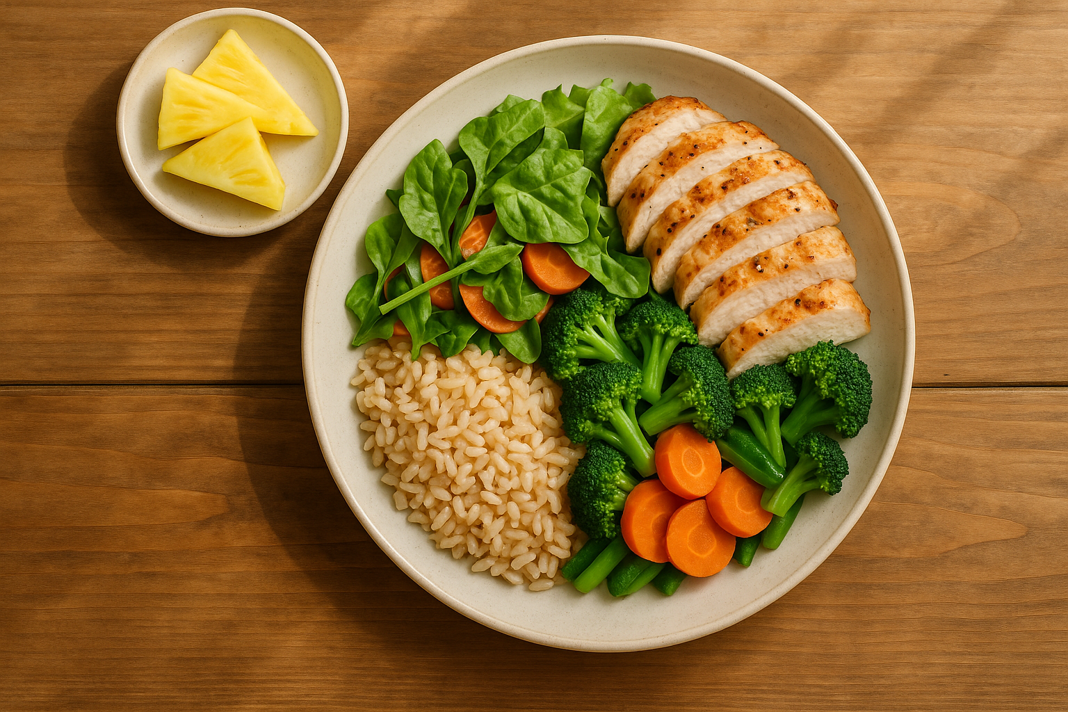 파인애플을 올바르게 활용하기 위해서는 전체 식단 구성 속에서의 ‘역할’을 분명히 정하는 것이 중요합니다. 아래는 파인애플을 포함한 체중 감량용 식단 예시입니다.